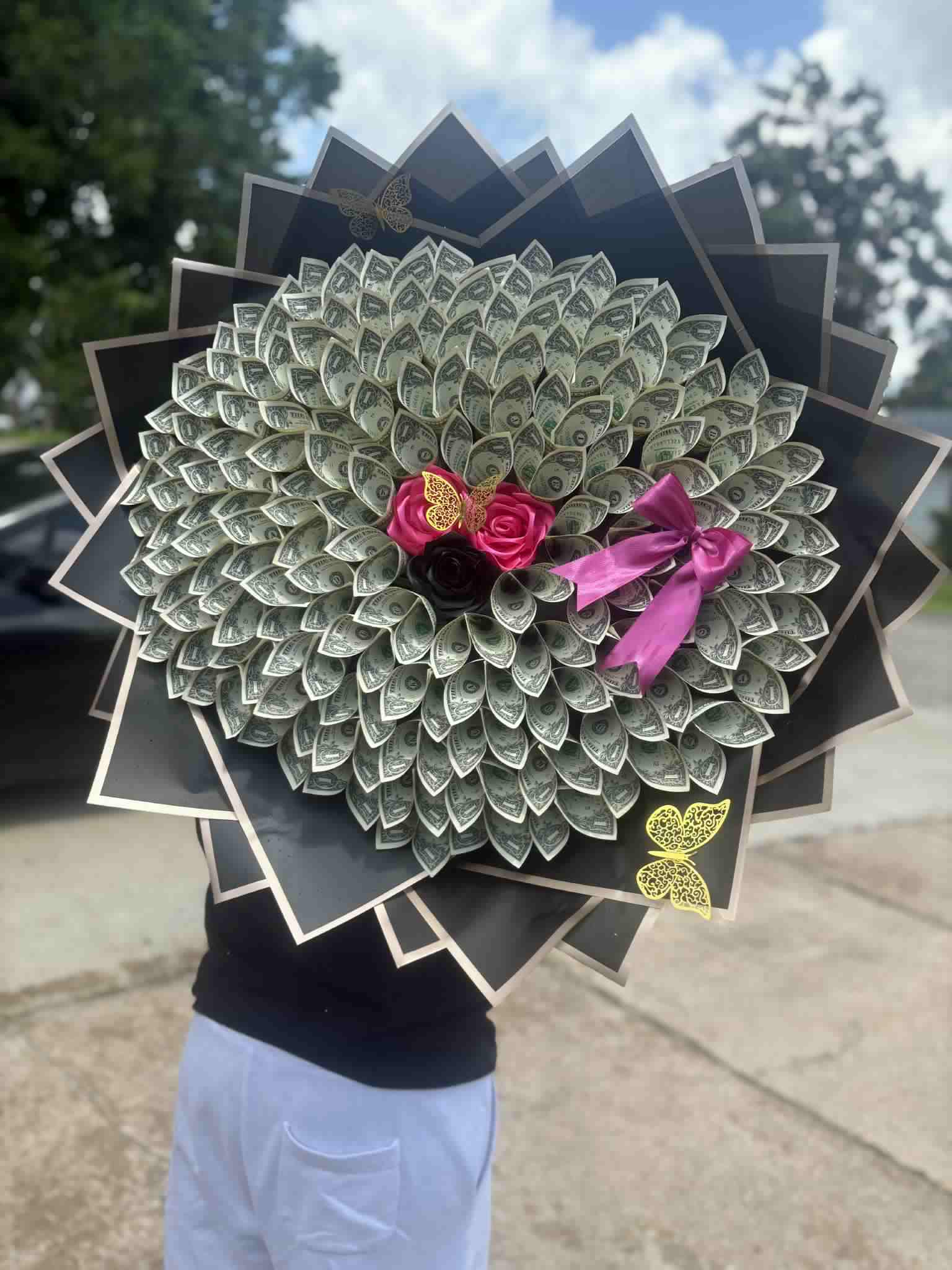 All money flowers are made with $1 bills by default. To customize the denomination or quantity, place your order first, thenย contact us at 713-367-4769. See more designs with different bills send a Whatsapp.